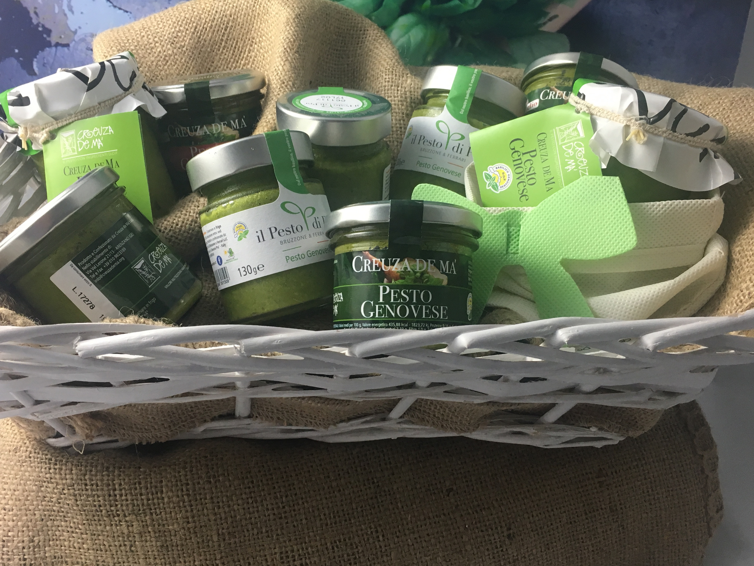 Il cesto , confezionato dal CONSORZIO PRODUTTORI del PESTO GENVOESE , è stato consegnato questa mattina alla Redazione accompagnato da spiegazioni sulla autenticità del vero pesto genovese